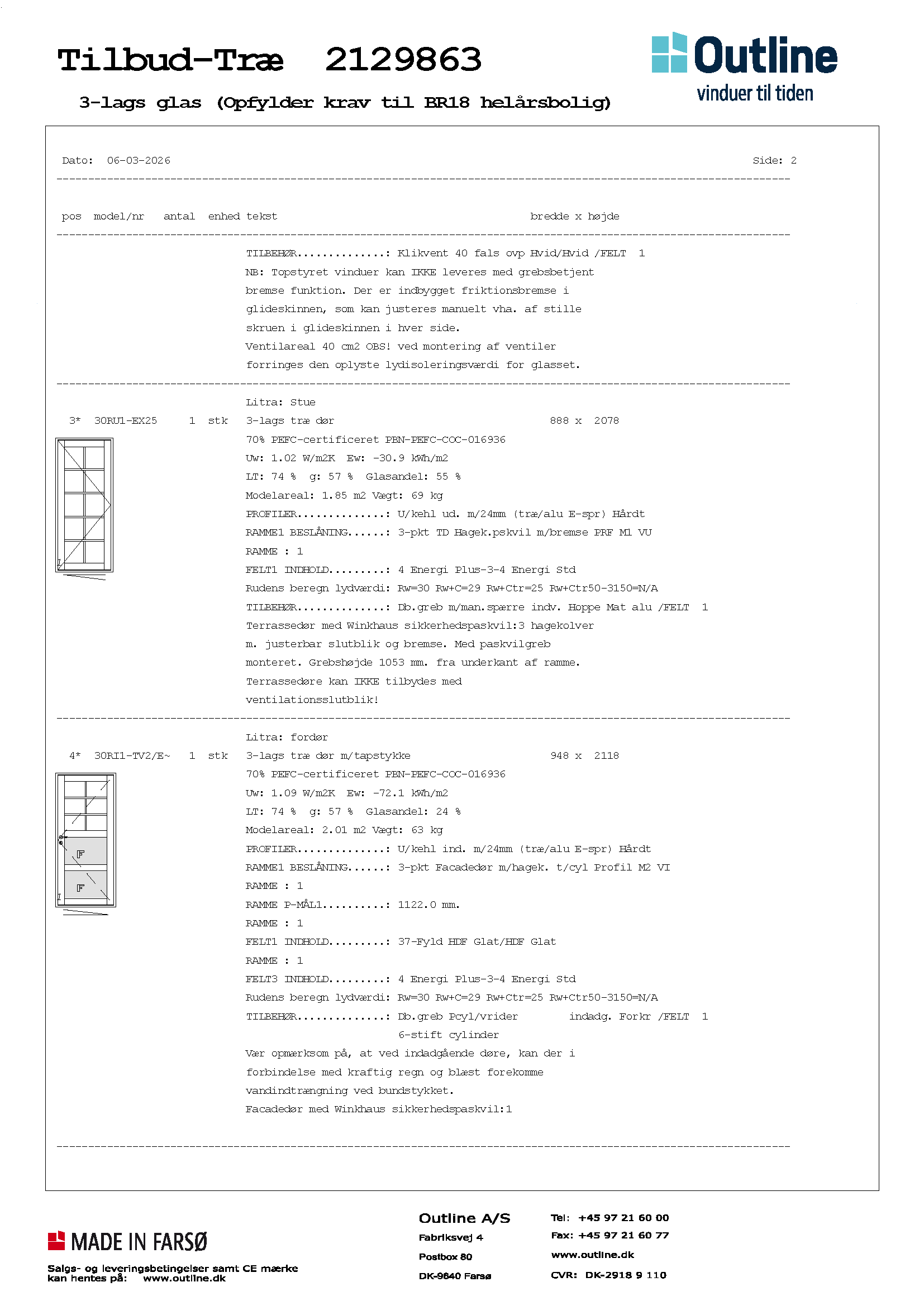 Vi ønsker at hjælpe vores kunder så godt på vej som muligt, og derfor har vi fintunet designet på vores tilbud og ordrer. Derved får i et mere overskueligt overblik over de valgte elementer. Præcise opstalttegninger, der viser de indtaste mål og en mere overskuelig opsummering af din ordre.